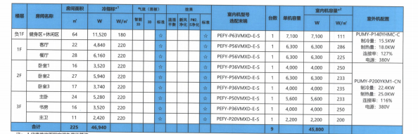 三菱机电中央空调系统技术配置表