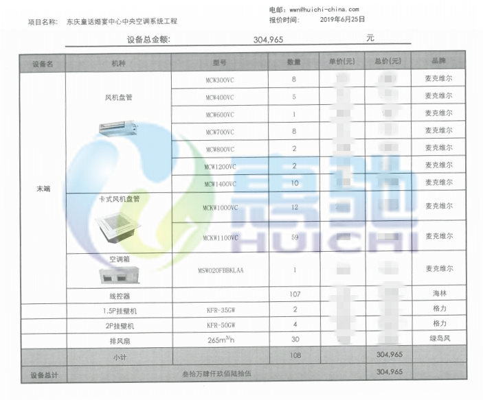 项目内容:麦克维尔风机盘管设备安装调试工程